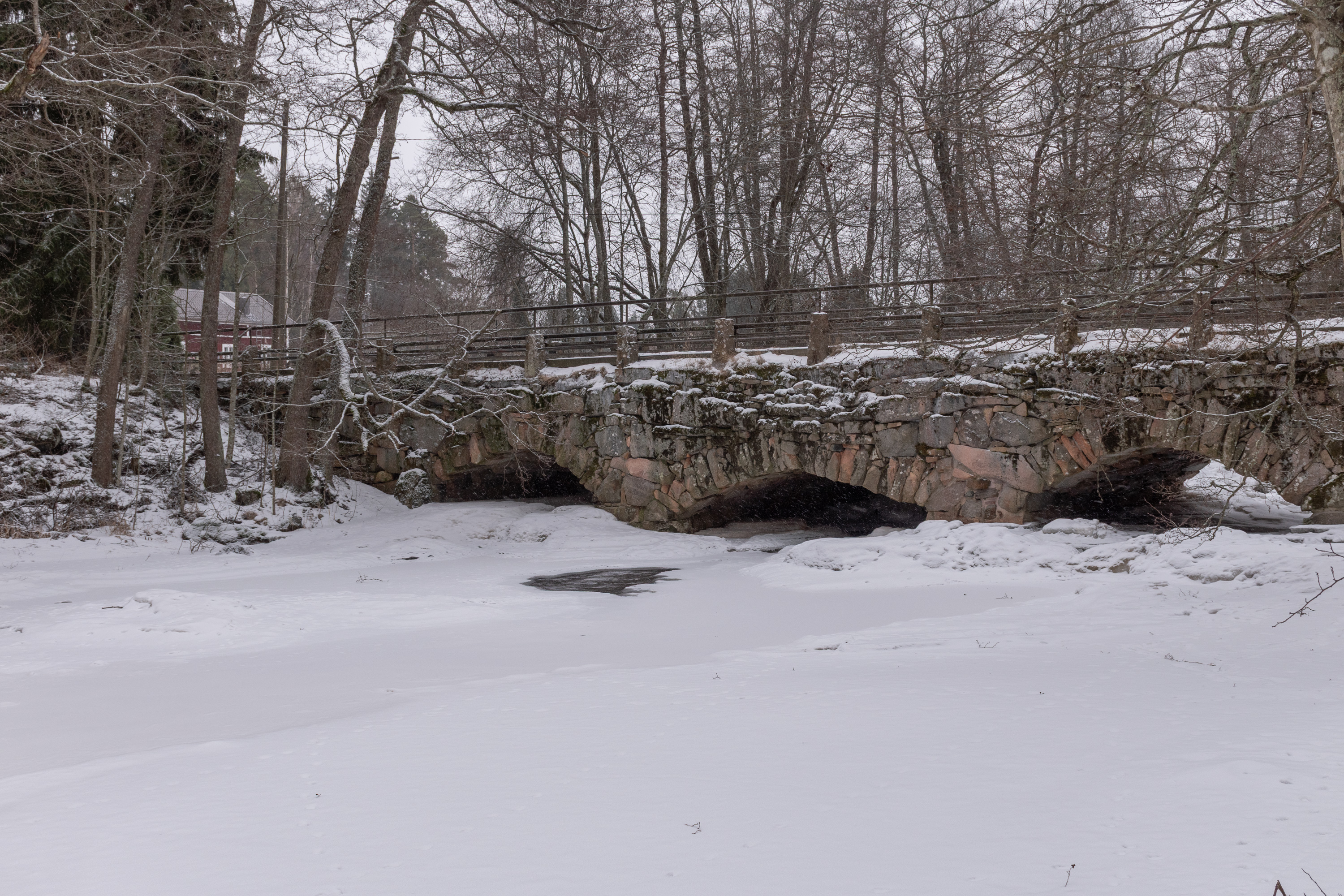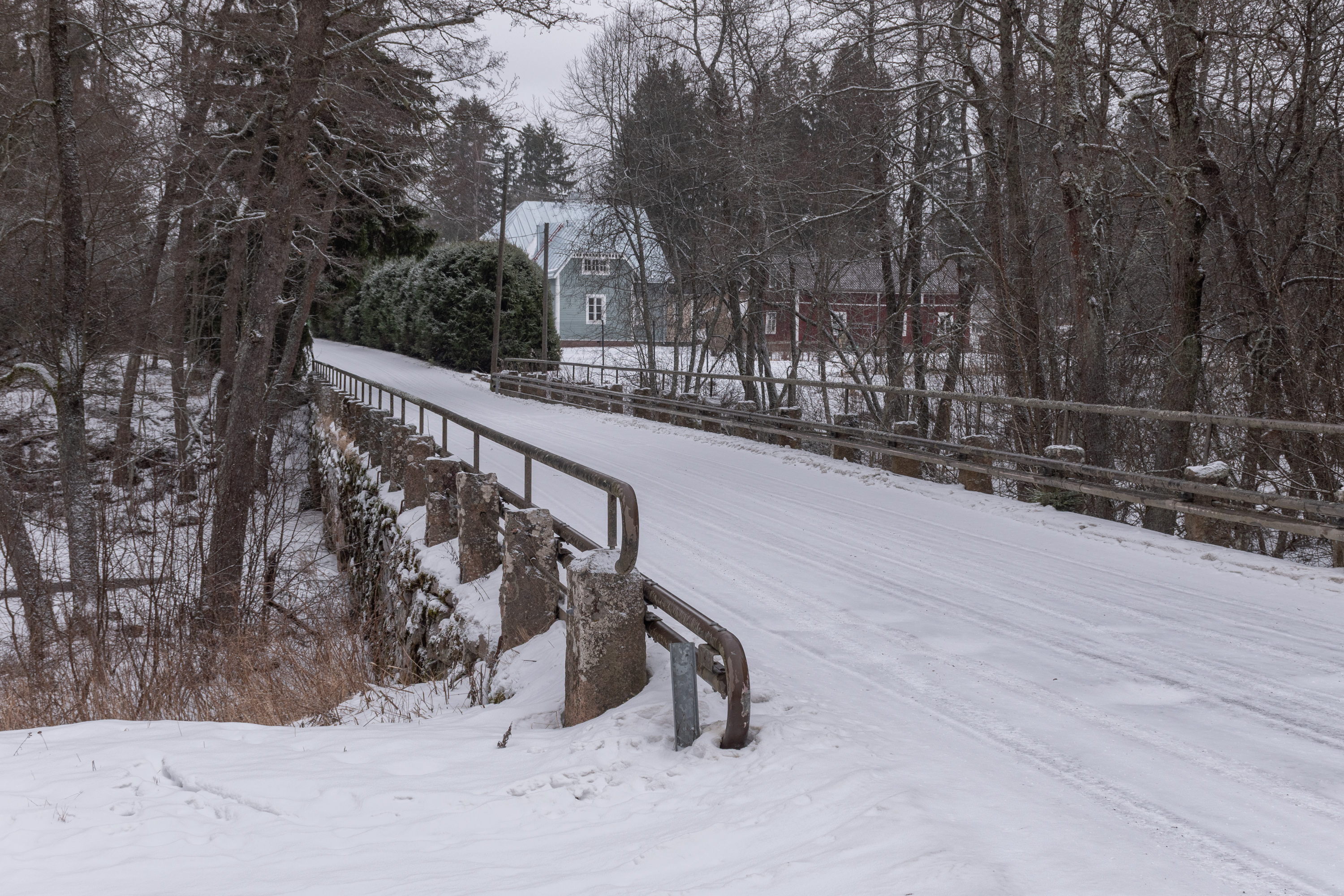 16. Vuojoki — красивое название, означает "Быстротечная река"; корень vuo, означающий стремнину, остался только в топонимике; любители военной истории, может, слышали про бои на Вуосалми в 1944 — то Вуосалми было на Вуоксе на Карельском перешейке. Назвать Эурайоки быстротечной, однако, сложно; но по всей видимости, тут изначальным названием было на самом деле Vuohijoki, "Козья река"; видимо, так когда-то звали низовья Эйрайоки. В частности в 1540 упоминалось Vohijoki, а в 1680 Wuohjoki. Ведущий к поместью мостик построен, по-видимому, одновременно с нынешним зданием, хотя после этого реконструировался.