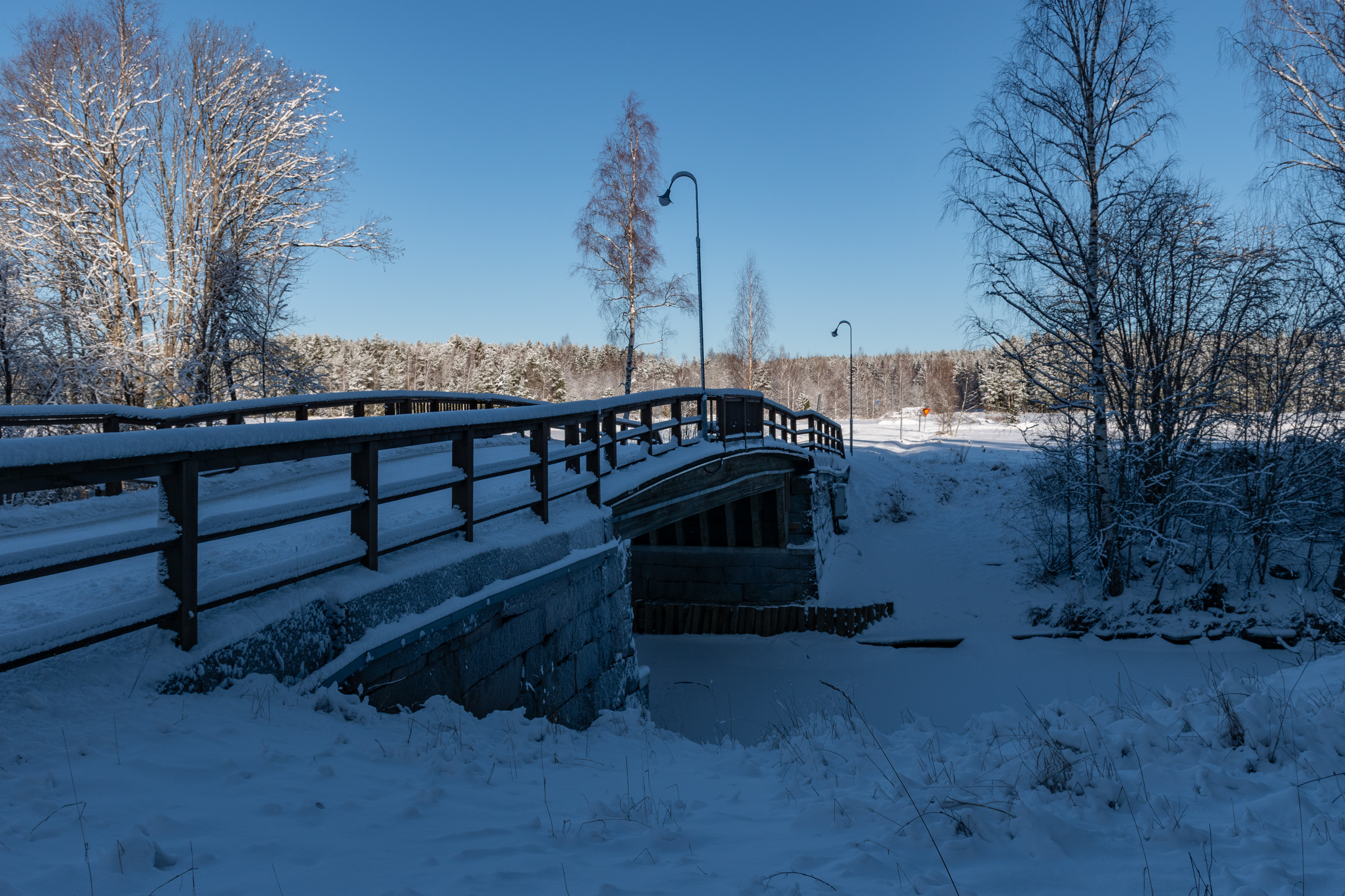 43. Деревню Лапийоки (Lapijoki), находящуюся у самого поворота на АЭС Олкилуото с трассы 8 Пори-Раума, следует упомянуть только потому, что здесь на одноименной речке сохранился музейный каменный мост, 1883 года. По мосту шел, разумеется, изначально главный прибрежный тракт; нынешняя трасса 8 построена в обход деревни в 1950-х.