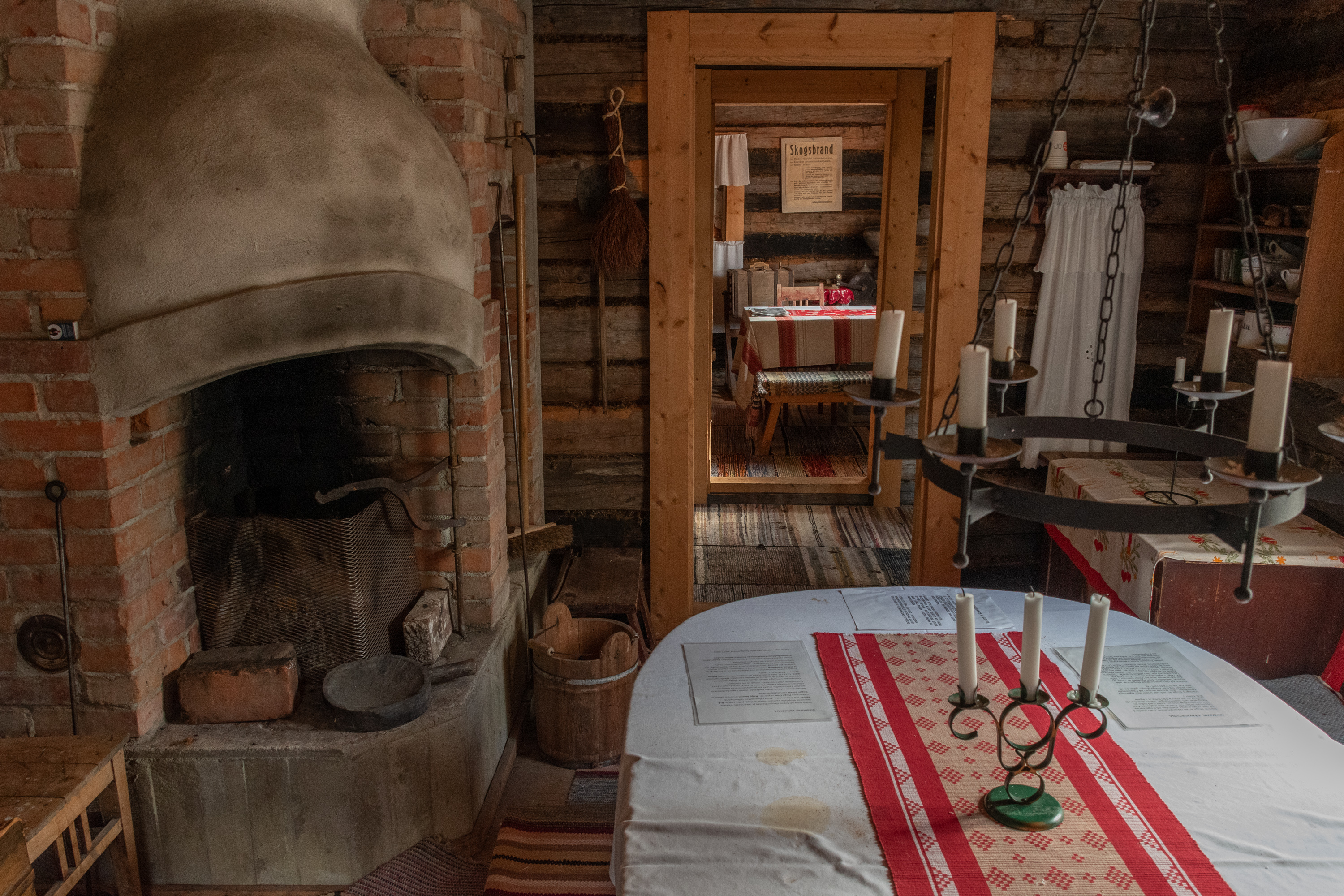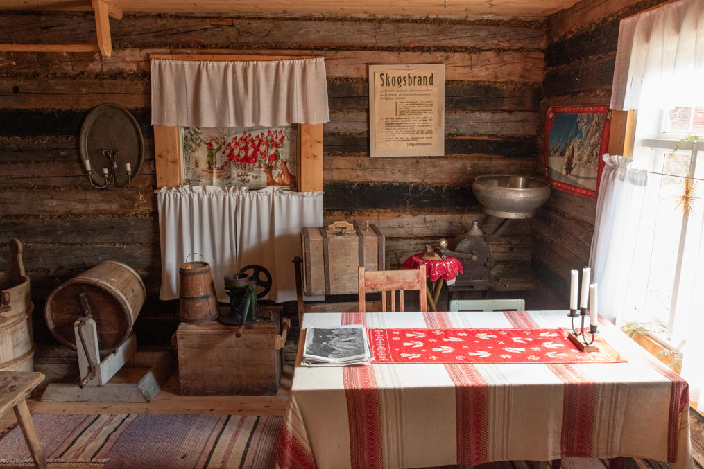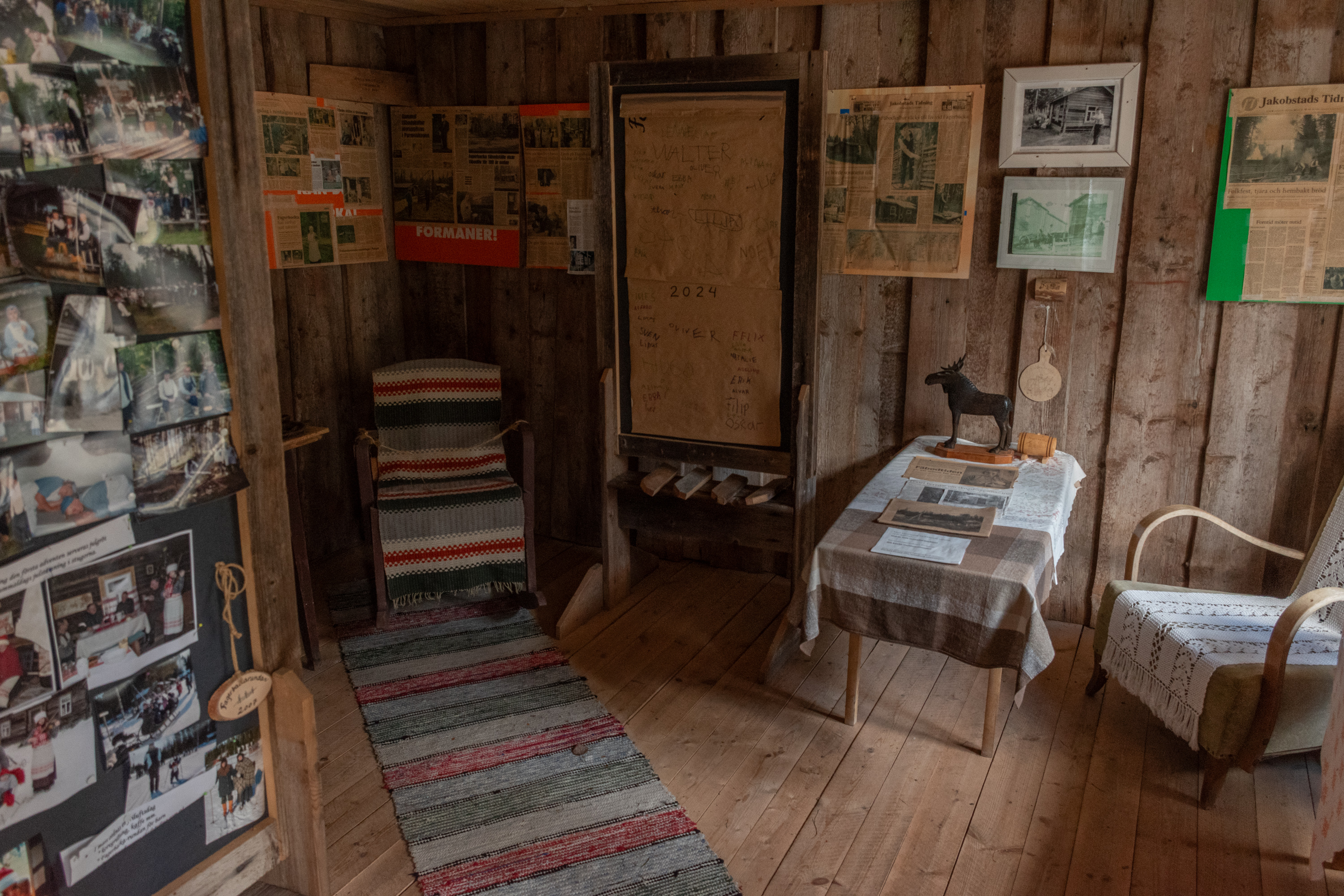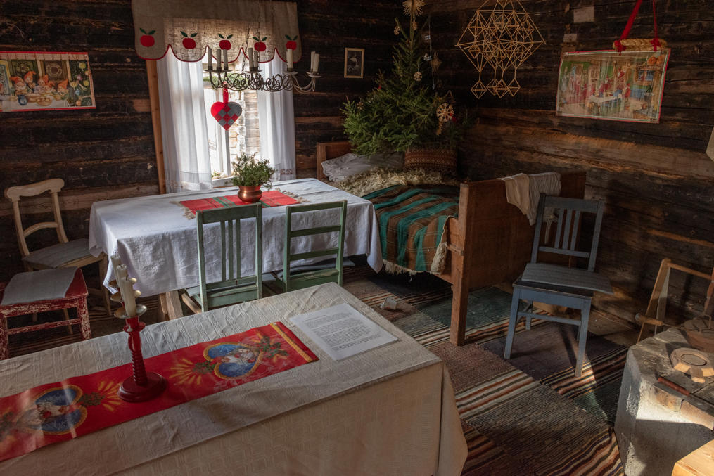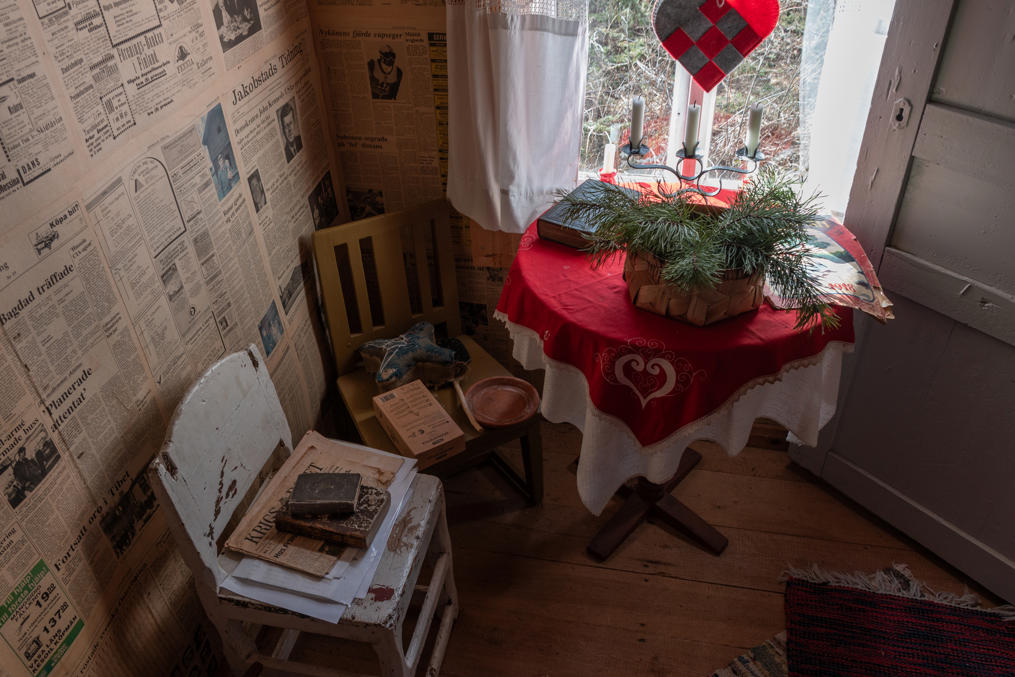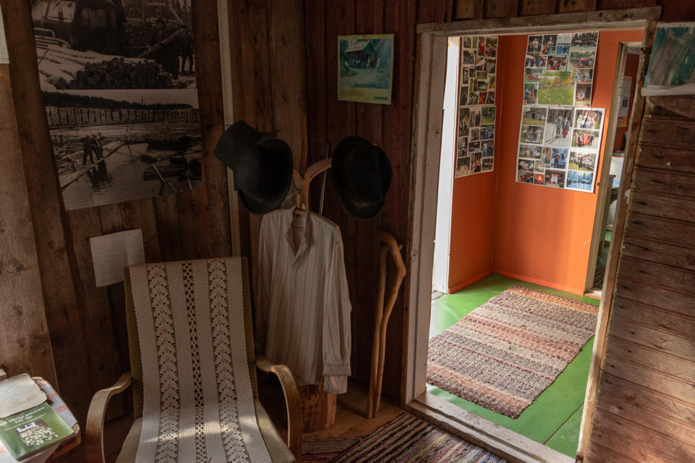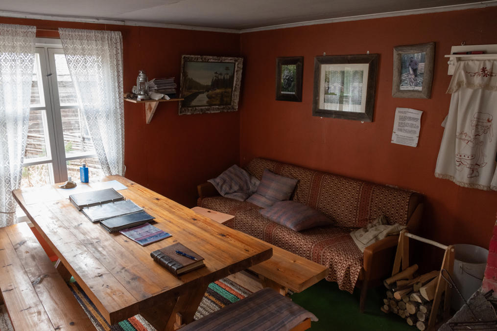 52. Главная хижина (из четырех вроде бы) — Маттью-Олина (Mattjus-Olins stuga) — с информационными материалами. Для меня полнейшей неожиданностью и культурным шоком стало то, что хижины все не заперты и можно спокойно зайти и разглядывать сколько хочешь! В Финляндии, конечно, очень много чего на доверии, — и это одна из вещей, за которые мы все ее и любим, — но все-таки всему есть предел, и традиционные сельские музеи-скансены, как хотя бы показанный мельком выше, в Эссе, неизменно закрыты на замок, и там гулять и рассматривать обычно можно только снаружи; а открыты бывают только в летний сезон, иногда буквально всего по одному месяцу в год. А тут знакомься хоть круглый год 24/7. Возможно, в этом есть что-то именно от шведоязычных финнов; помню в Малаксе, в южной части шведоязычной Остроботнии, избушку в начале природной тропы, тоже обставленную и с информацией, тоже не запертую.