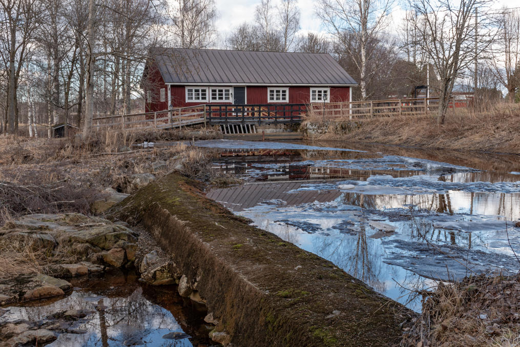 62. Река Пурмо (Purmo, фин. Purmonjoki) технически впадает в Эссе перед самым впадением последней в море, но все же обычно считается отдельной водной системой. От Эссе Пурмо отличает вдвое меньший расход воды и значительно более близкое к природному состояние — на Пурмо ГЭС нет, видимо, слишком мелкая для этого речка. Но мелкие отдельные плотины есть, например тут, у мельницы Стинасхольма (Stinasholma).