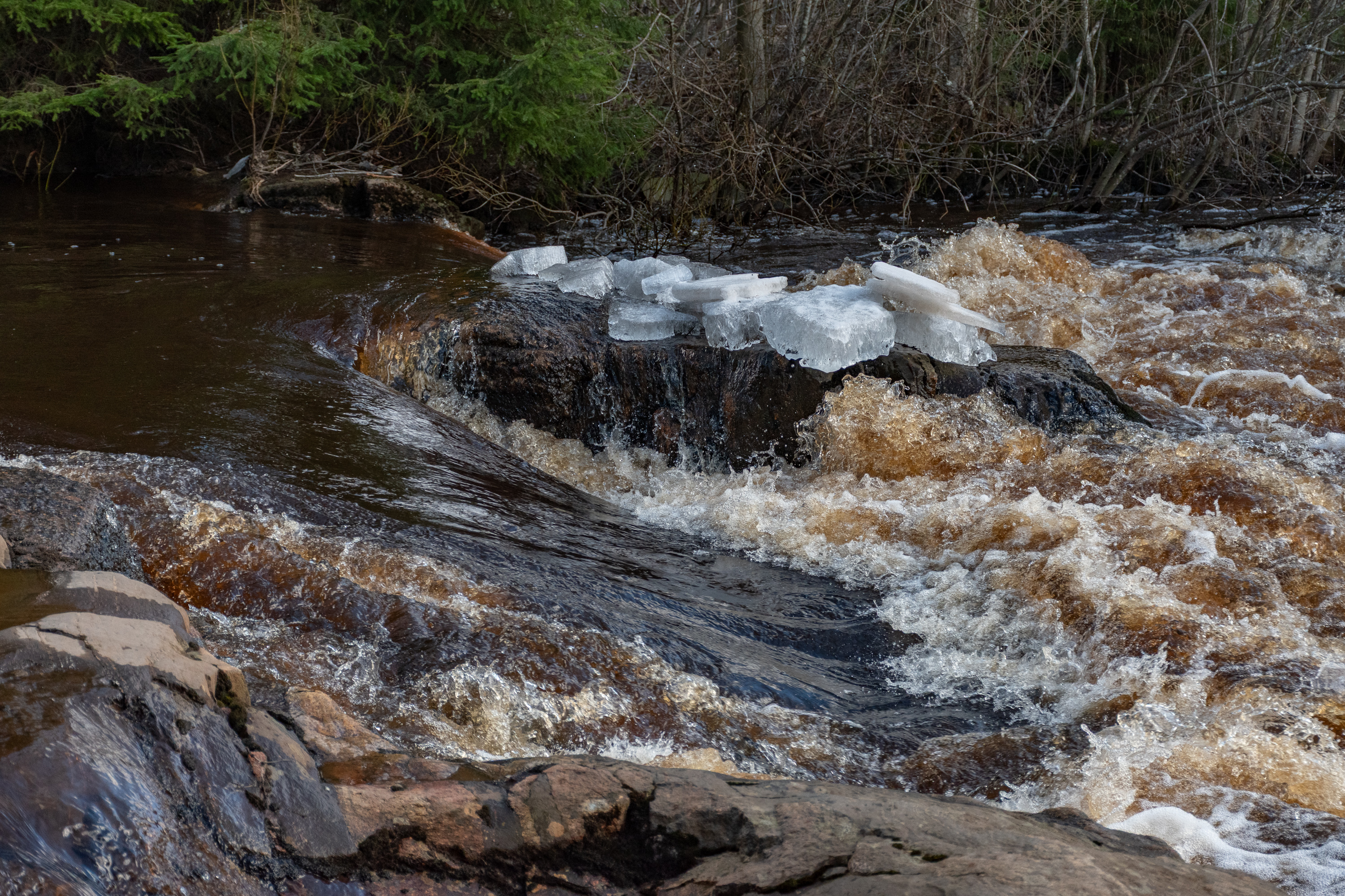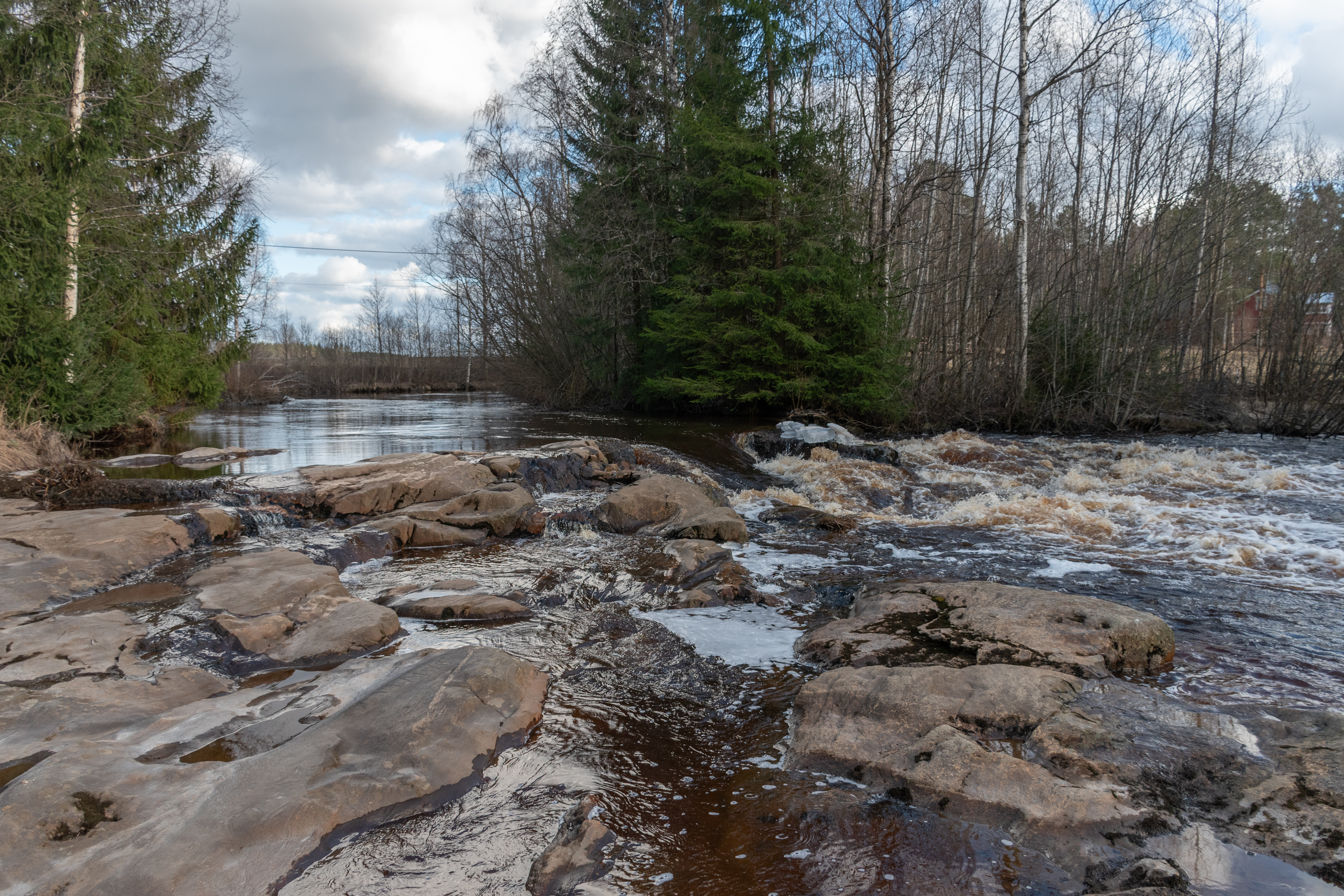 64. И не зря, место красивое, с водопадиками. Это пороги Бреннасфорсен (Brännasforsen).