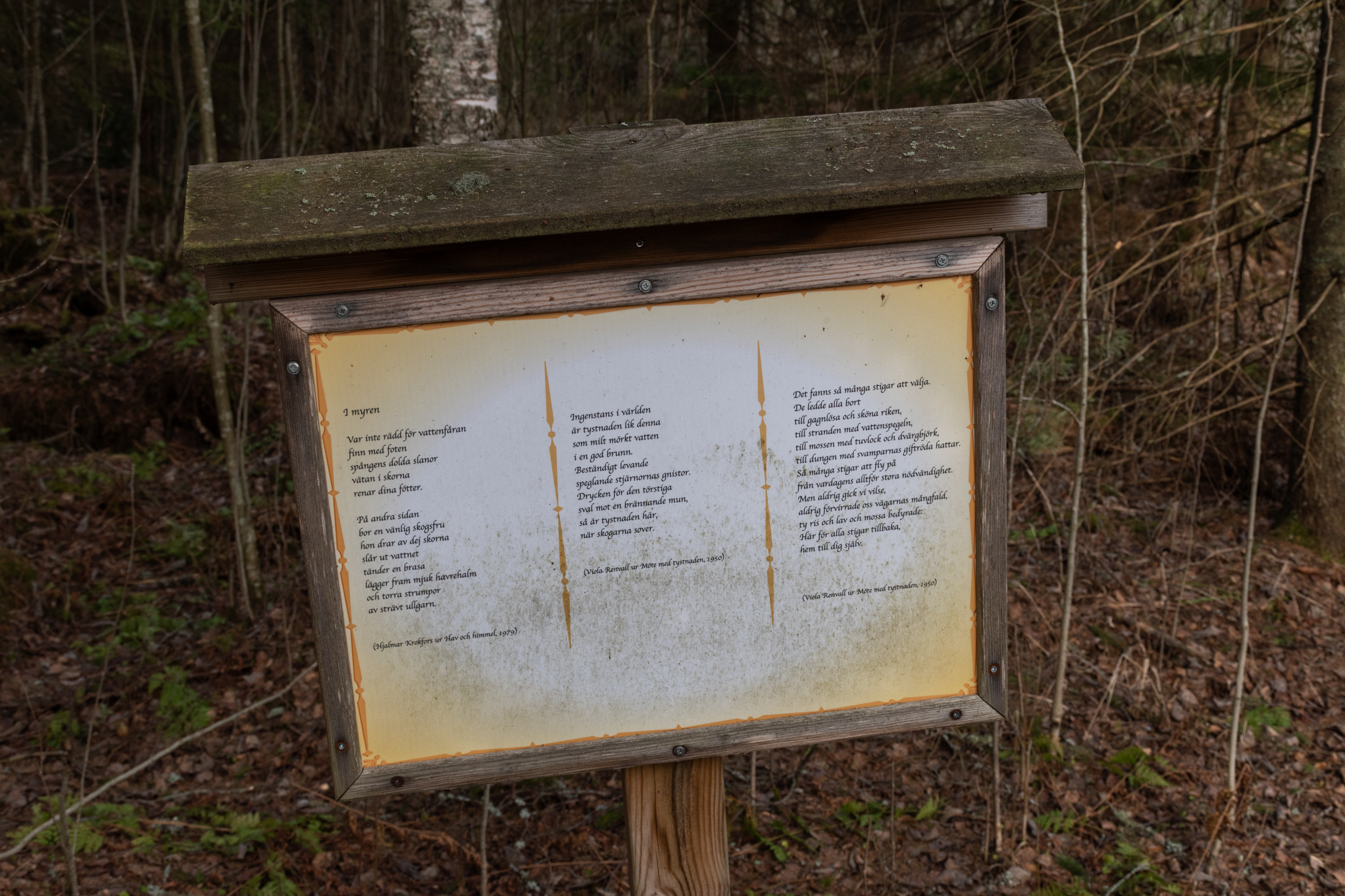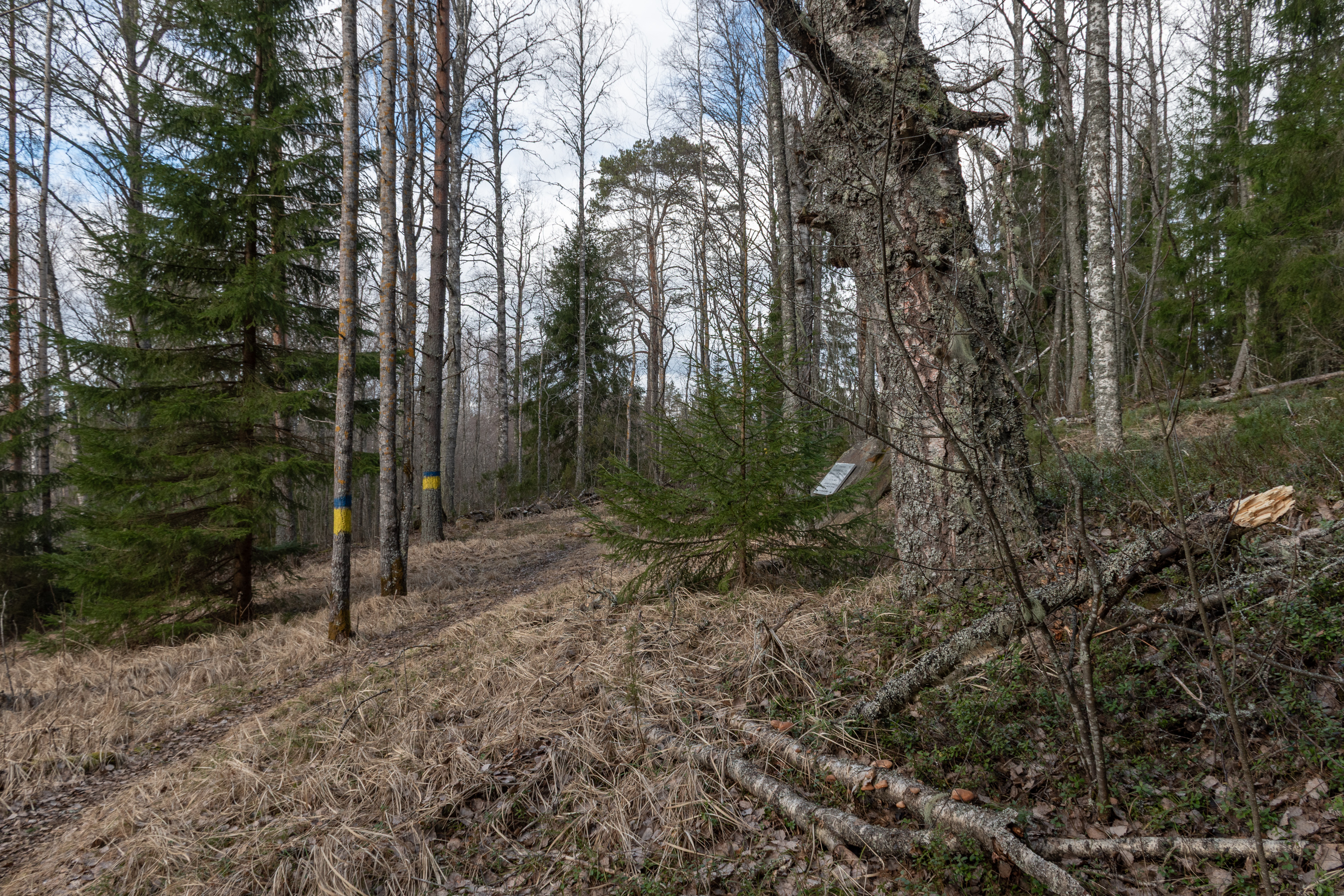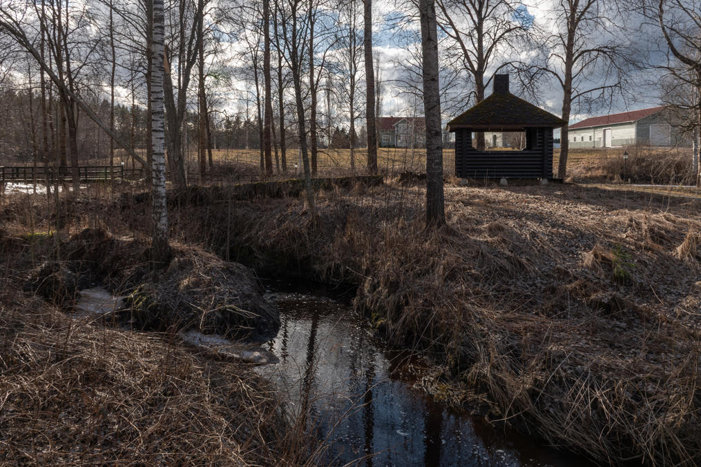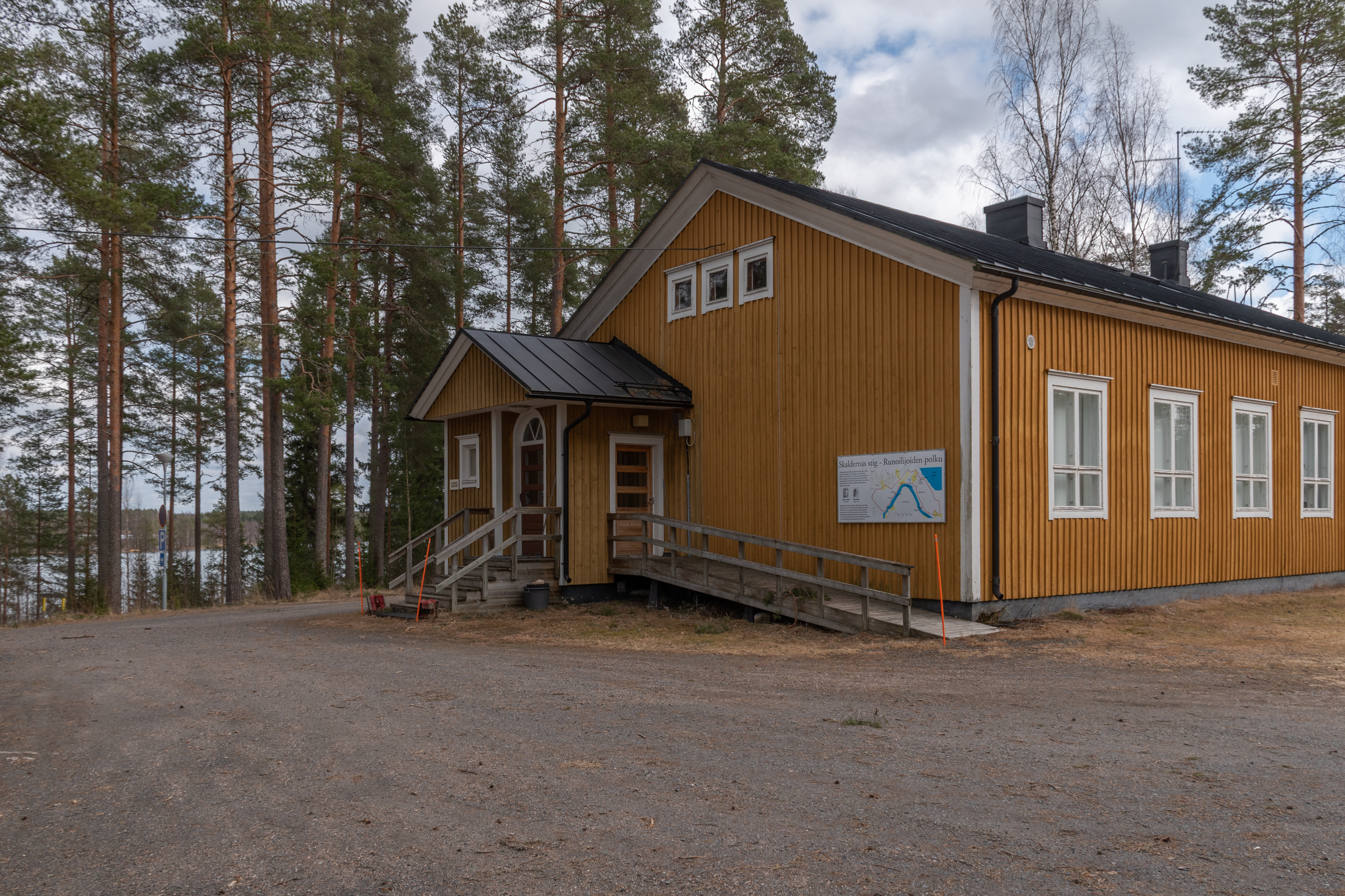 30. Природной достопримечательностью для осмотра в Педерсёре я выбрал пятикилометровый пеший маршрут частично берегом Эссе, тропу Поэтов (Skaldernas stig), начинающуюся от бывшей школы в деревне Щиск (Kisk) чуть в сторону от Лаппфорса. Означенные поэты — это Ялмар Крукфорс (Hjalmar Krokfors, 1904-1981) и Виола Ренвалль (Viola Renvall, 1905-1998), которые здесь жили и работали учителями в 1930-40-х, и действительно оба писали стихи на шведском. Не слышал никогда о них раньше и сказать ничего о них не могу, ну вроде как минимум про местную природу писали, но, наверное, не только.