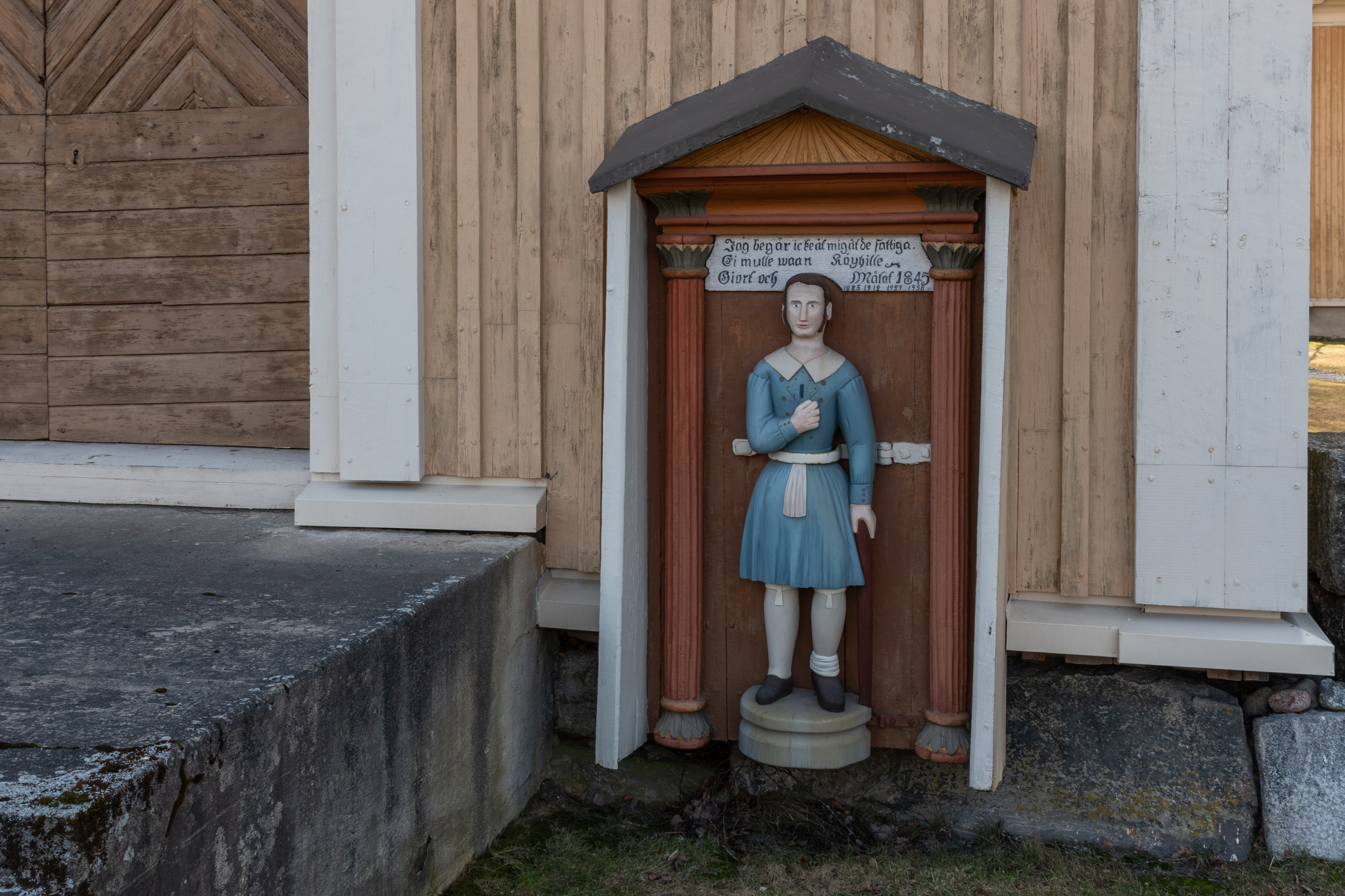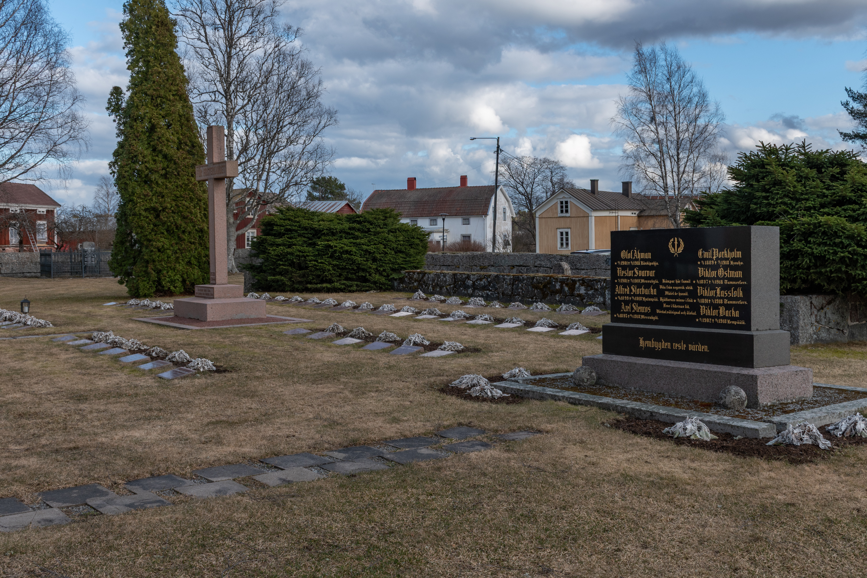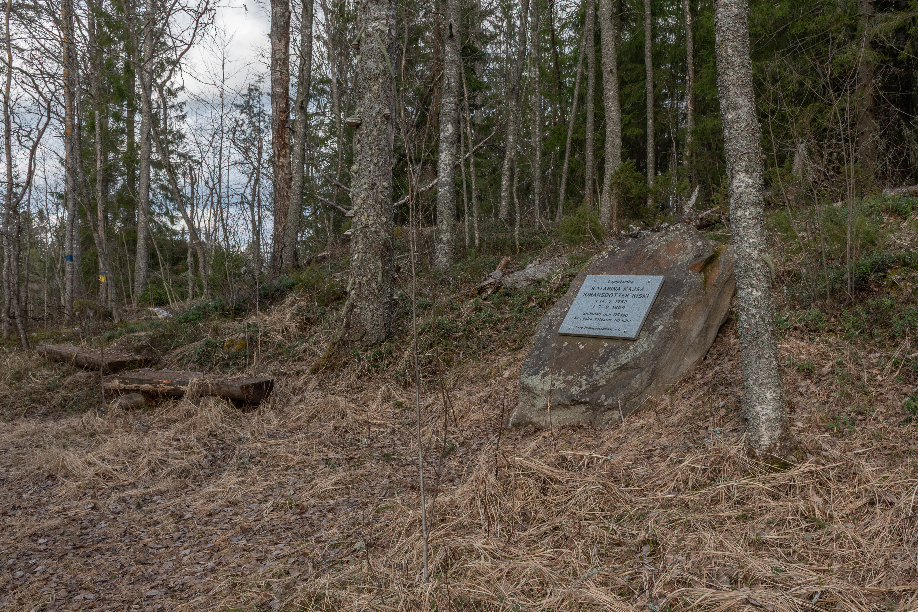 38. Неожиданный памятник: "Lampfambo ("бабушка из Лампи"? Бывшая школа и относится к хутору Лампи) Катарина Кайса Юхансдоттер Щиски, 14.7.1762-7.9.1809, осквернена и убита русскими кавалеристами. Краеведческое общество Эссе". Как обычно, можно только вновь констатировать, что война — очень хреновая вещь для большинства, кому довелось стать к ней сопричастным, и спасибо краеведческому обществу Эссе, что напомнили о судьбе случайной крестьянской женщины в нетривиальном месте. Однако ж дата 7.9.1809 интересна — это самый конец Финляндской войны (русско-шведской войны 1808-1809) — тогда уже давно вся Финляндия была оккупирована Россией, и сражения шли на стороне собственно Швеции. Место было еще более глухое, чем сейчас, тут идет дорога дальше из этой деревни на восток в следующие долины, на Теръерв и Каустинен, но все же непонятно, что было на тот момент тут делать русским кавалеристам. Да и общей политикой для российских войск в той войне было по возможности не трогать местное население, чтобы те не возражали против присоединения к России, — разумеется, де-факто это далеко не всегда соблюдалось. В общем, интересно было бы узнать, что именно за эпизод тут был в сентябре 1809 — наверное, в местных библиотеках есть местная краеведческая литература, рассказывающая об этом подробнее — на шведском, конечно.