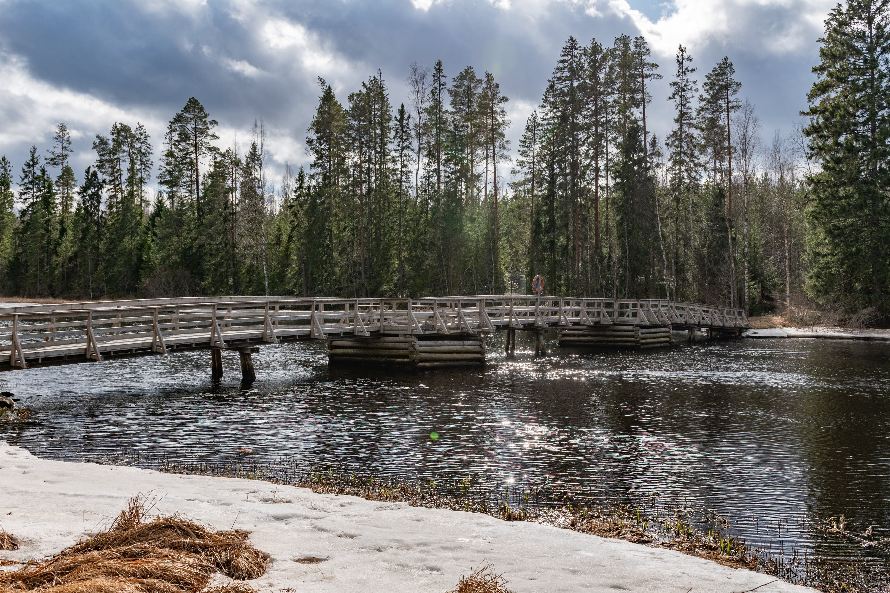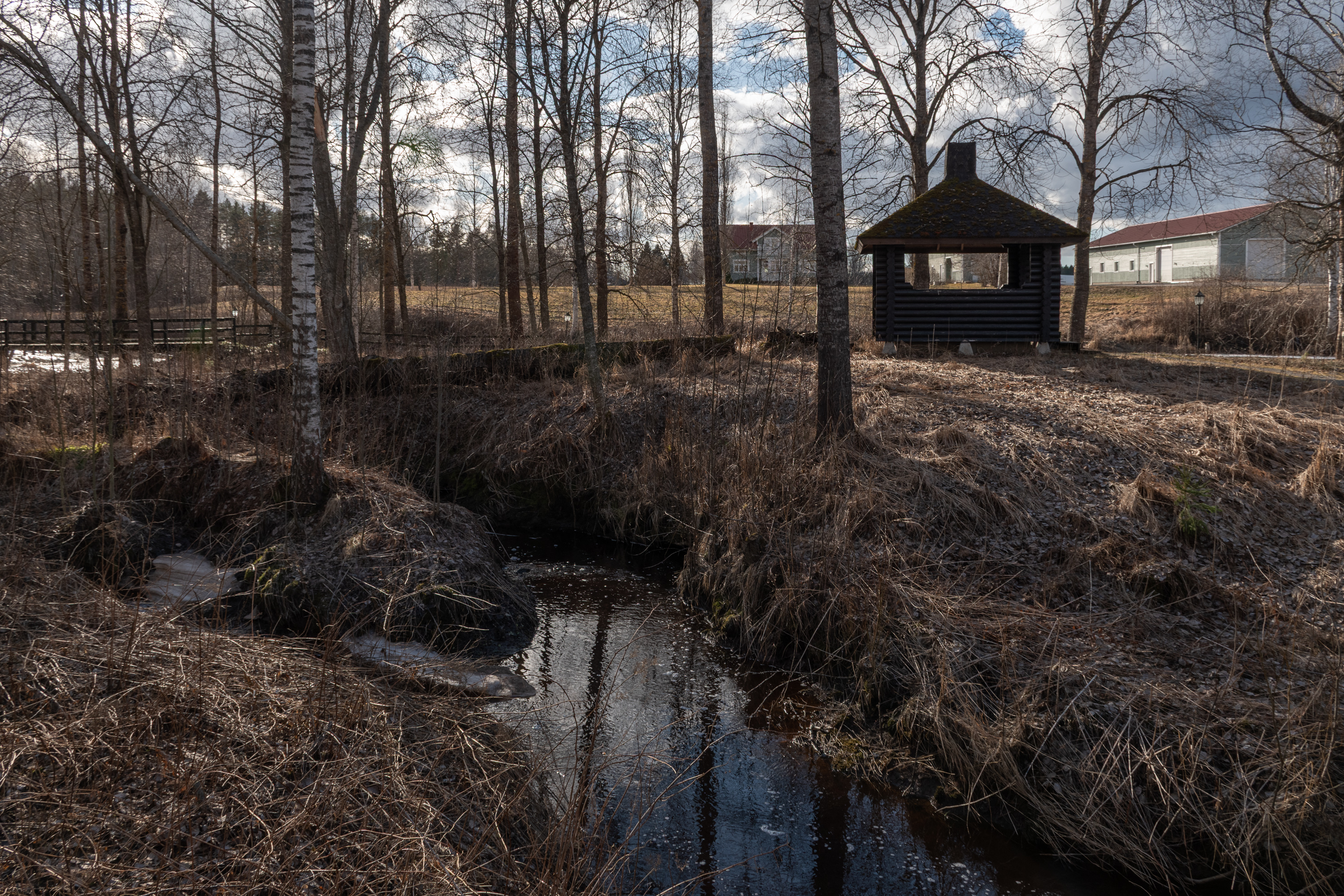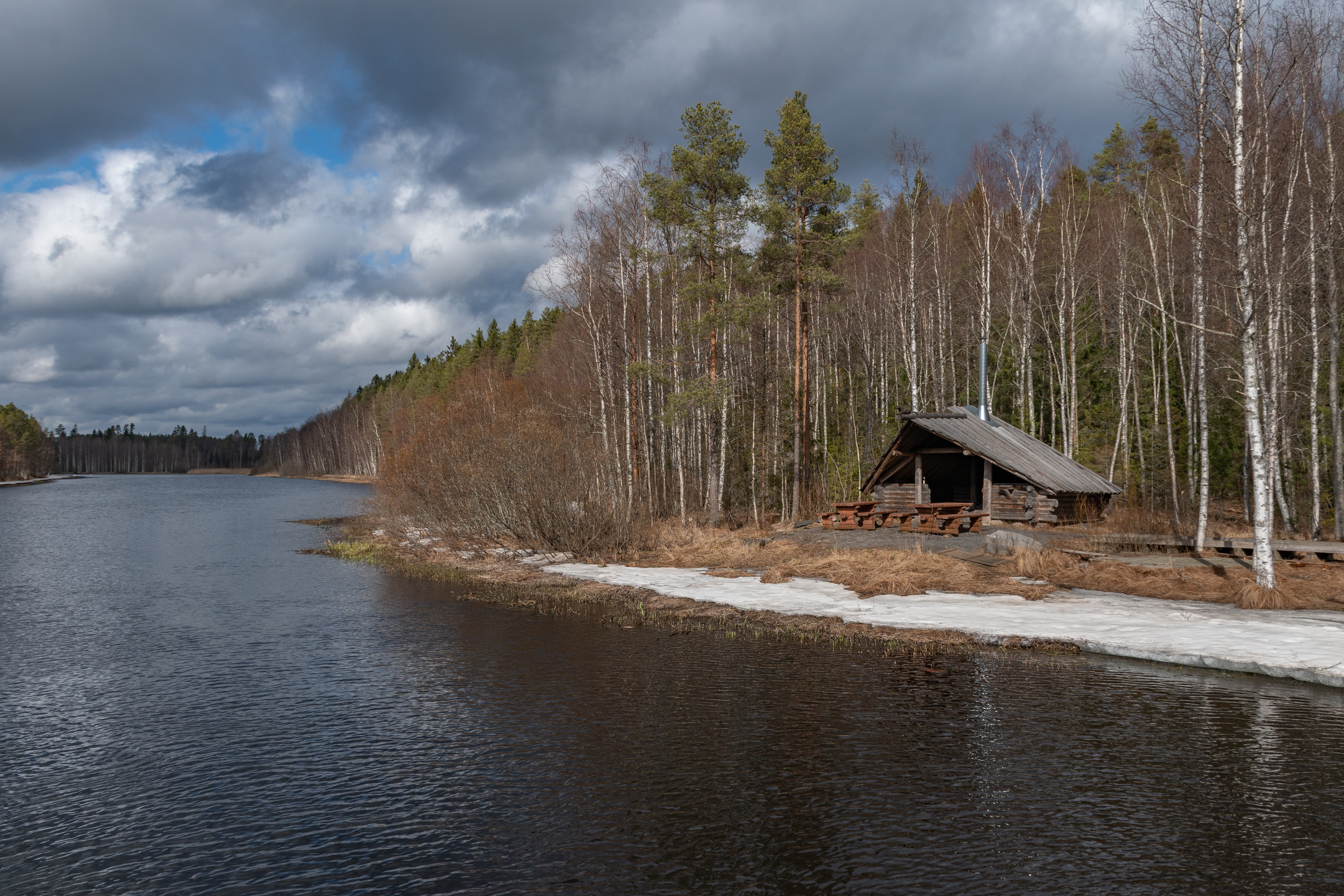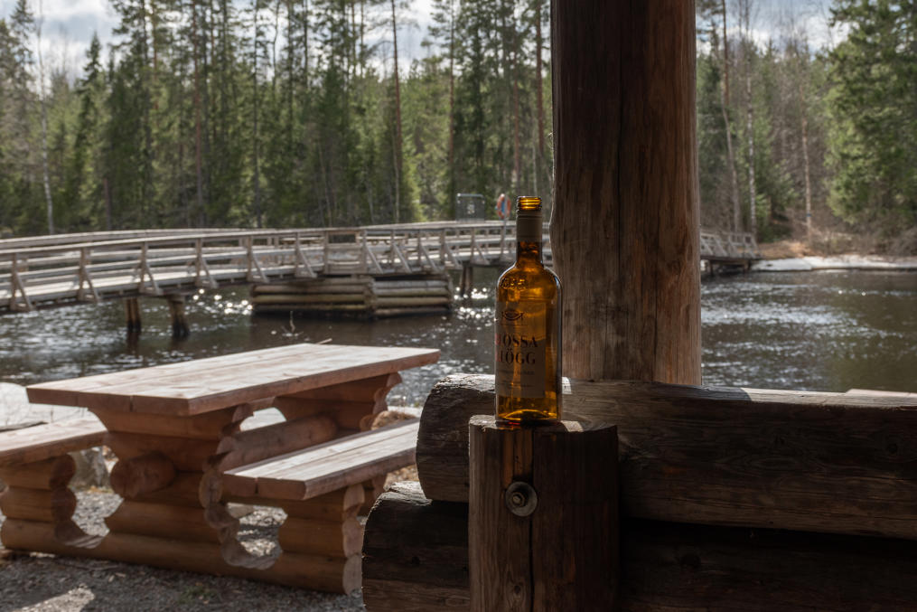 35. У моста стоит отличный навес-лааву для привала. Рождество кто-то отмечал еще — бутылка из-под безалкогольного глёга стоит :)