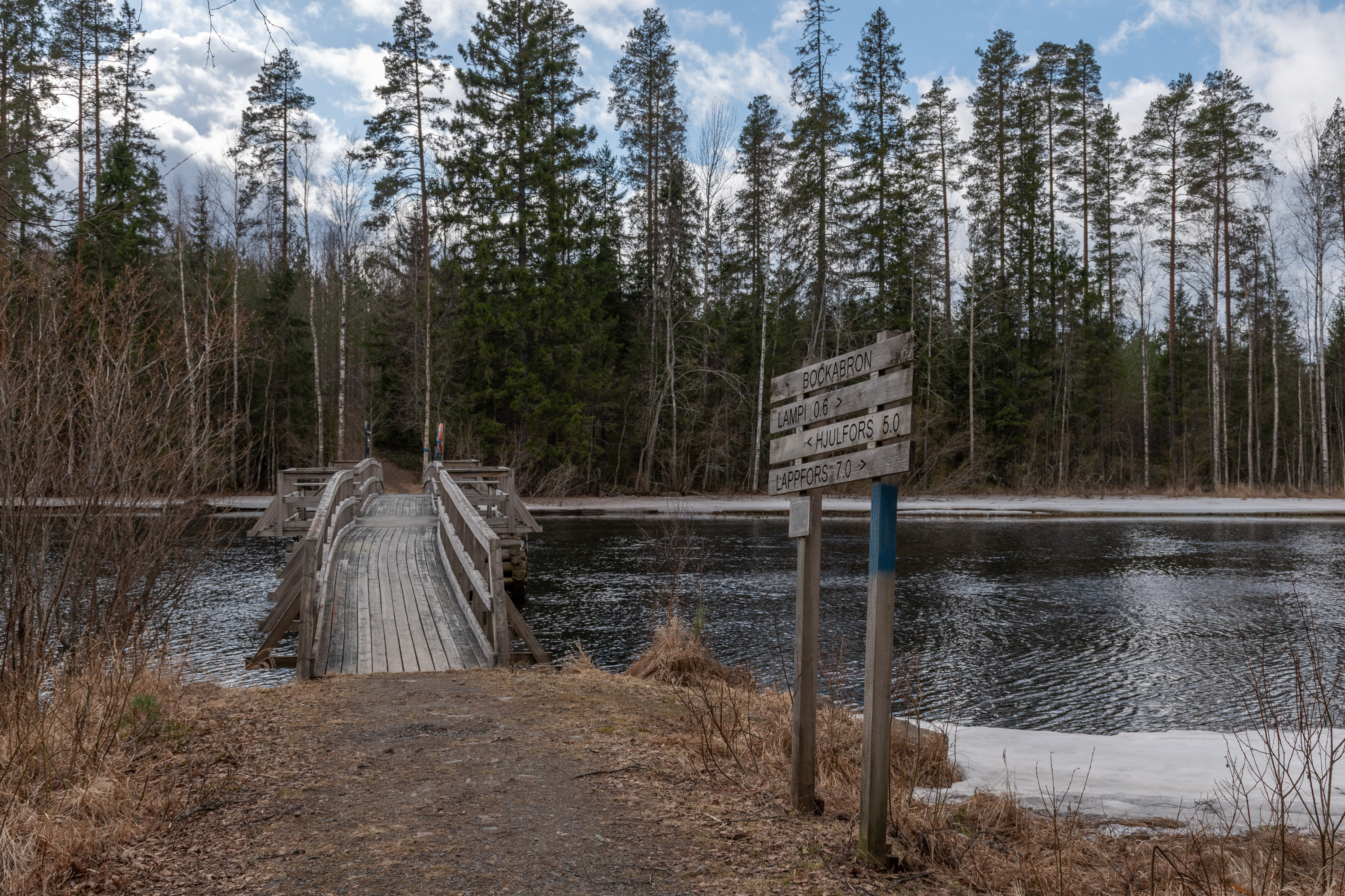 50. К Лостенену тоже заходит упоминавший маршрут Выдры. Здесь уже близко самая южная его точка, и как раз в этом месте маршрут также сопрягается с другим 50-километровым маршрутом, Хлебной дорогой (Leipätie), в сторону Южной Остроботнии, через Кортесъярви до Лаппаярви. Про тот маршрут ничего не могу сказать, никакие его участки не видел.