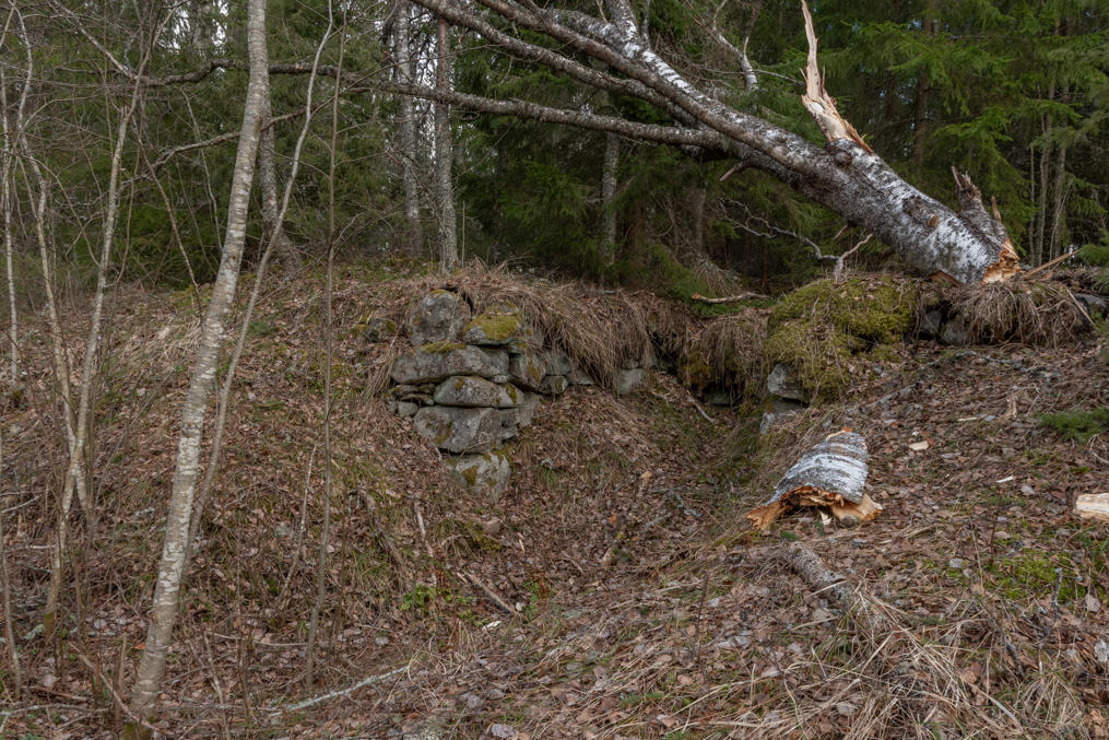 46. Пора перебираться из долины Эссе во вторую, более южную, Пурмо. С неасфальтированной дороги Лаппфорс-Лиллбю можно свернуть к археологическому памятнику — "церкви великанов" Екнабака (Jäknabacka).