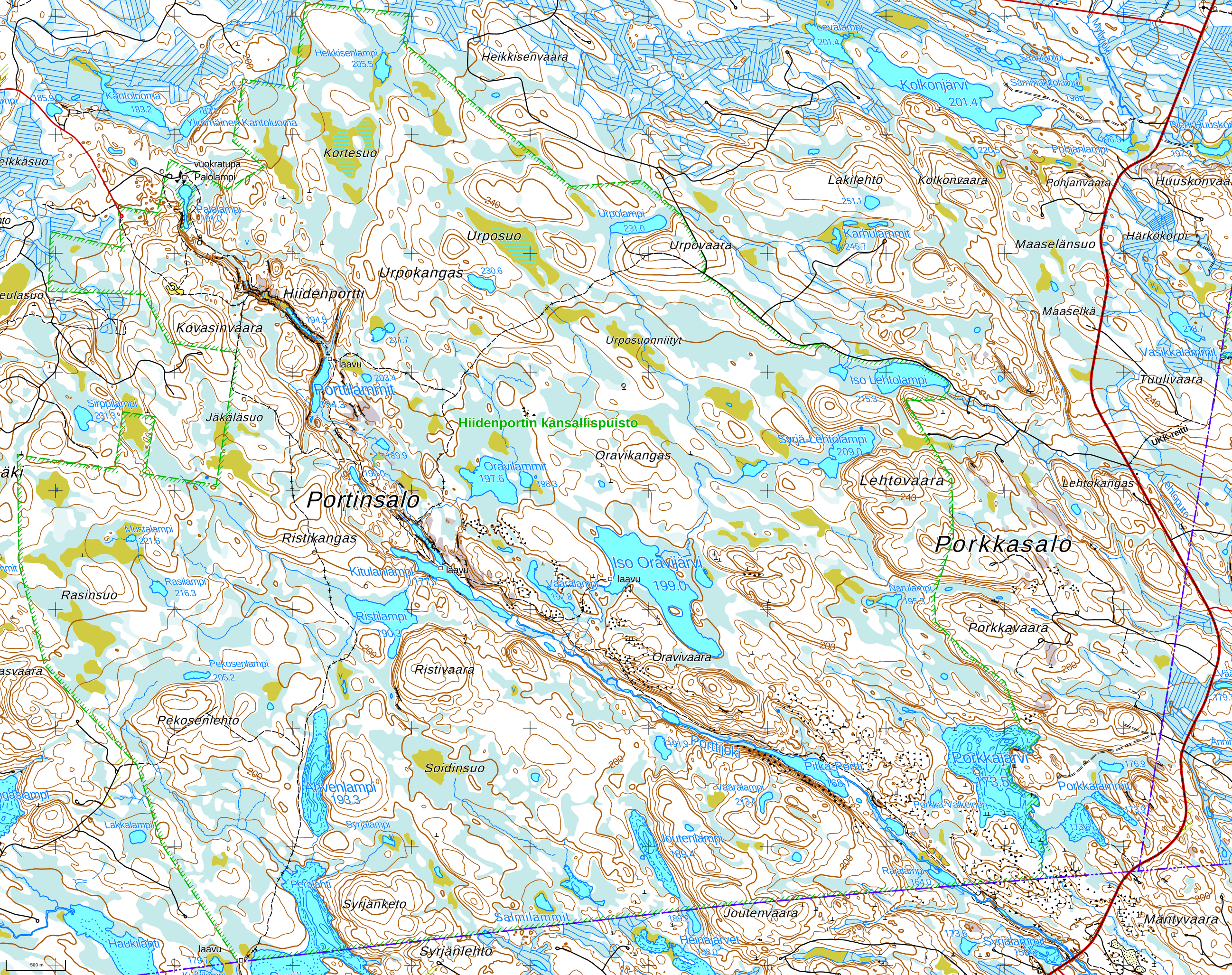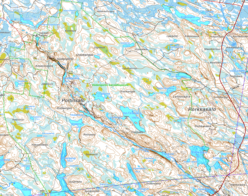 Национальный парк Хийденпортти (Hiidenportti) — относительно небольшой (45 кв. км) и удивительно малопосещаемый, в Кайнуу, в углу муниципального района Соткамо и в 85 км от регионального центра Каяани.