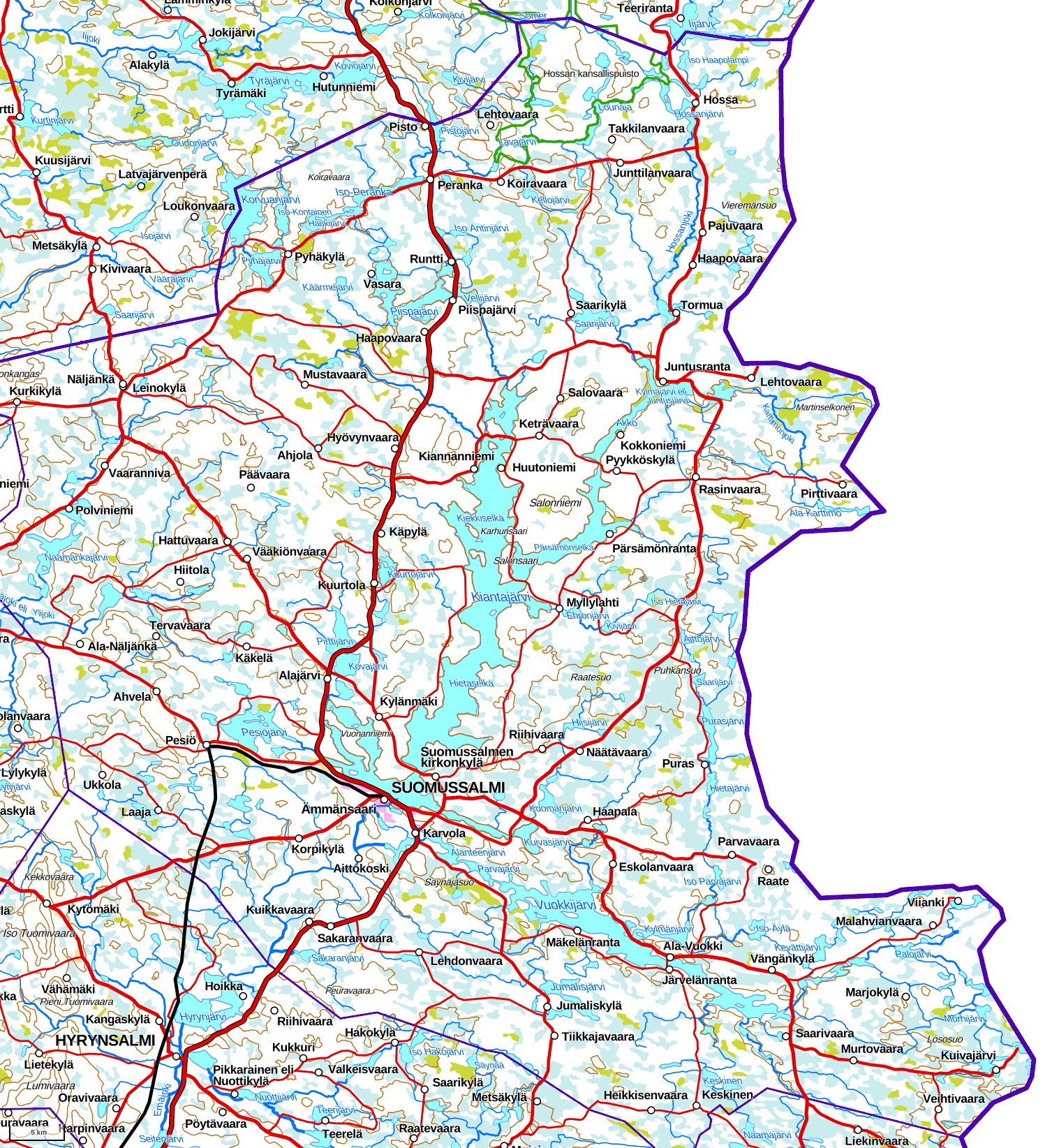 Суомуссалми больше всего известен как место крупных сражений Зимней войны 1939-1940: битва при Суомуссалми, где советская дивизия сумела занять село Суомуссалми, но была оттуда изгнана обратно, и битва на Раатской дороге, где другая советская дивизия, идущая на помощь к первой, была окружена и почти уничтожена на маленькой лесной дороге. Про эти битвы и посвященные им памятники я как раз написал в предыдущем посте. Но есть ли в Суомуссалми еще что-нибудь интересное? Конечно, есть! В основном просто природа, но есть и кое-какие рукотворные достопримечательности, и многие из них связаны с землей, находящейся совсем недалеко за границей — Беломорской Карелией.